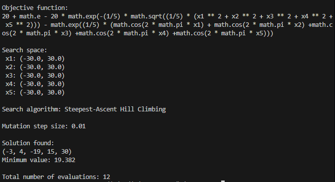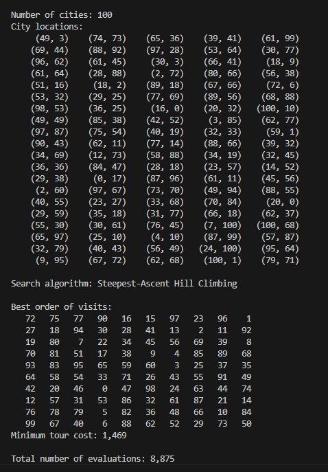 Local Search Algorithms - Hill climbing Algorithms를 Steepest Ascent를 사용하여 numeric과 tsp 문제를 해결했다.