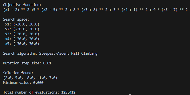 (x1 - 2) ** 2 +5 * (x2 - 5) ** 2 + 8 * (x3 + 8) ** 2 + 3 * (x4 + 1) ** 2 + 6 * (x5 - 7) ** 2